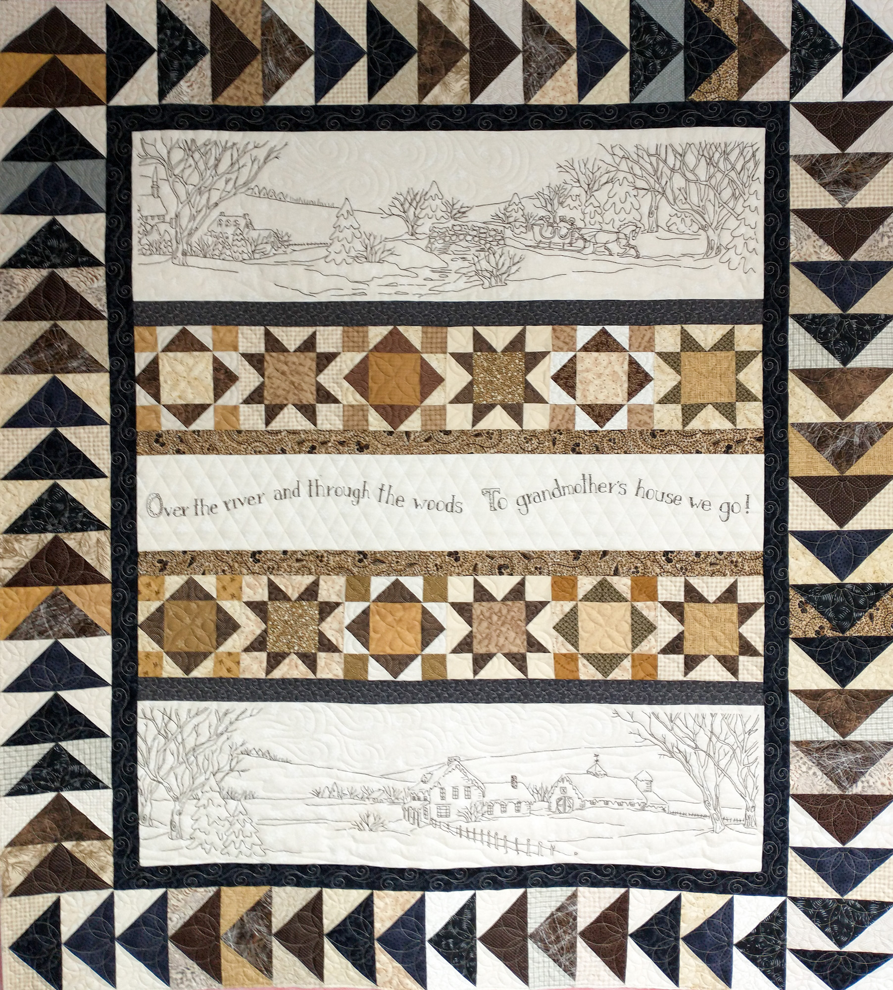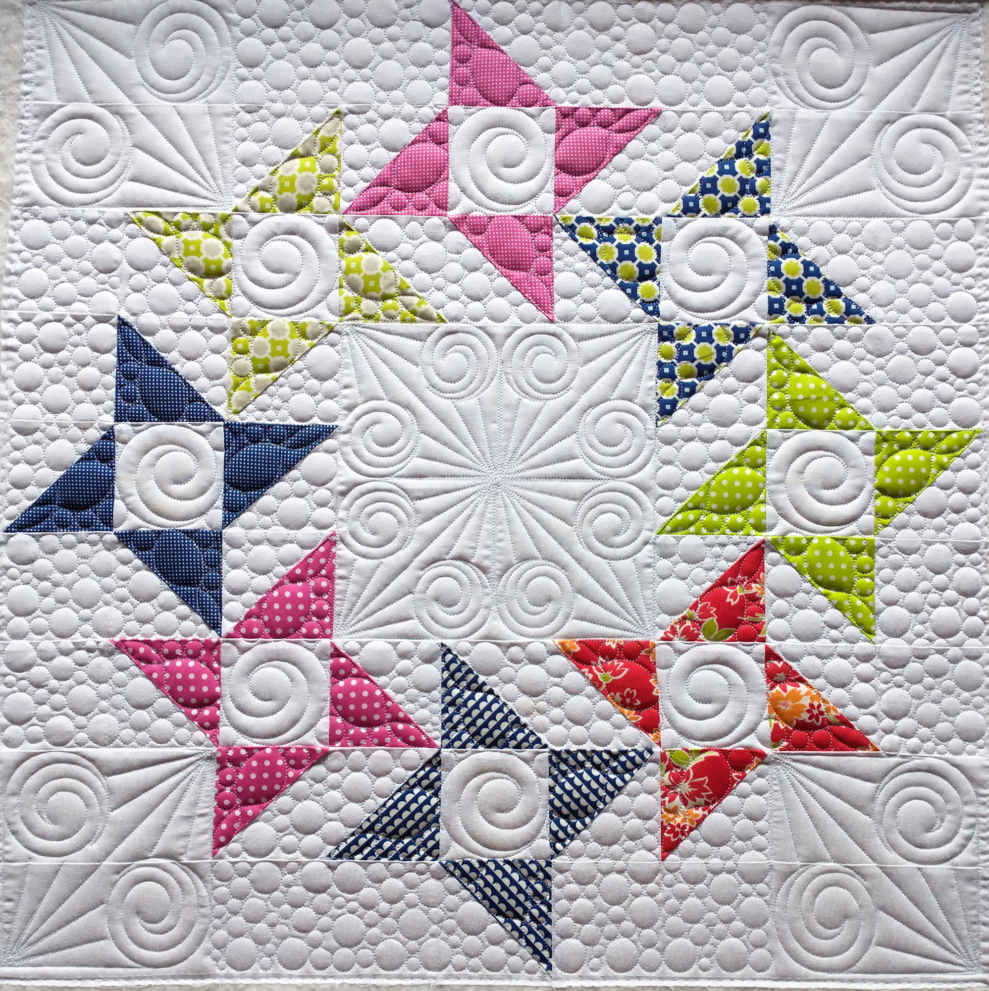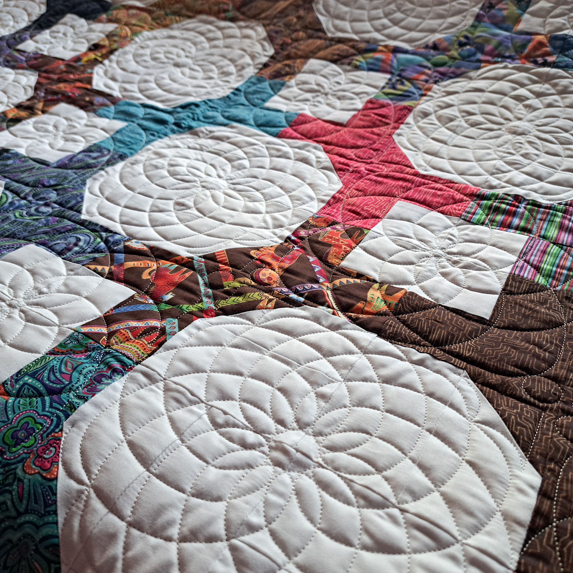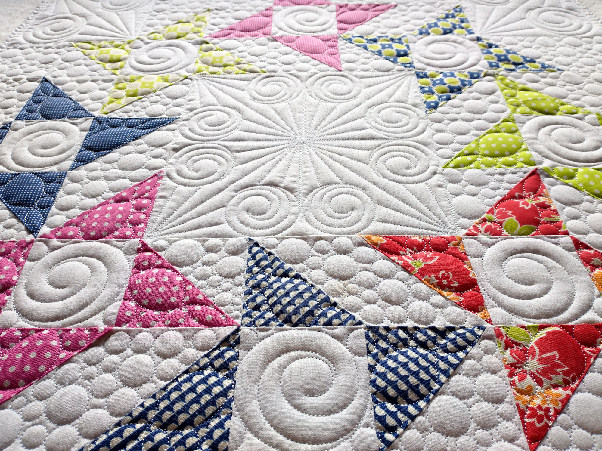 This gallery showcases just a few of the flimsies we have custom quilted. For those following along, the most recent quilts are at the beginning of the gallery. Click on the thumbnails to see larger photos.